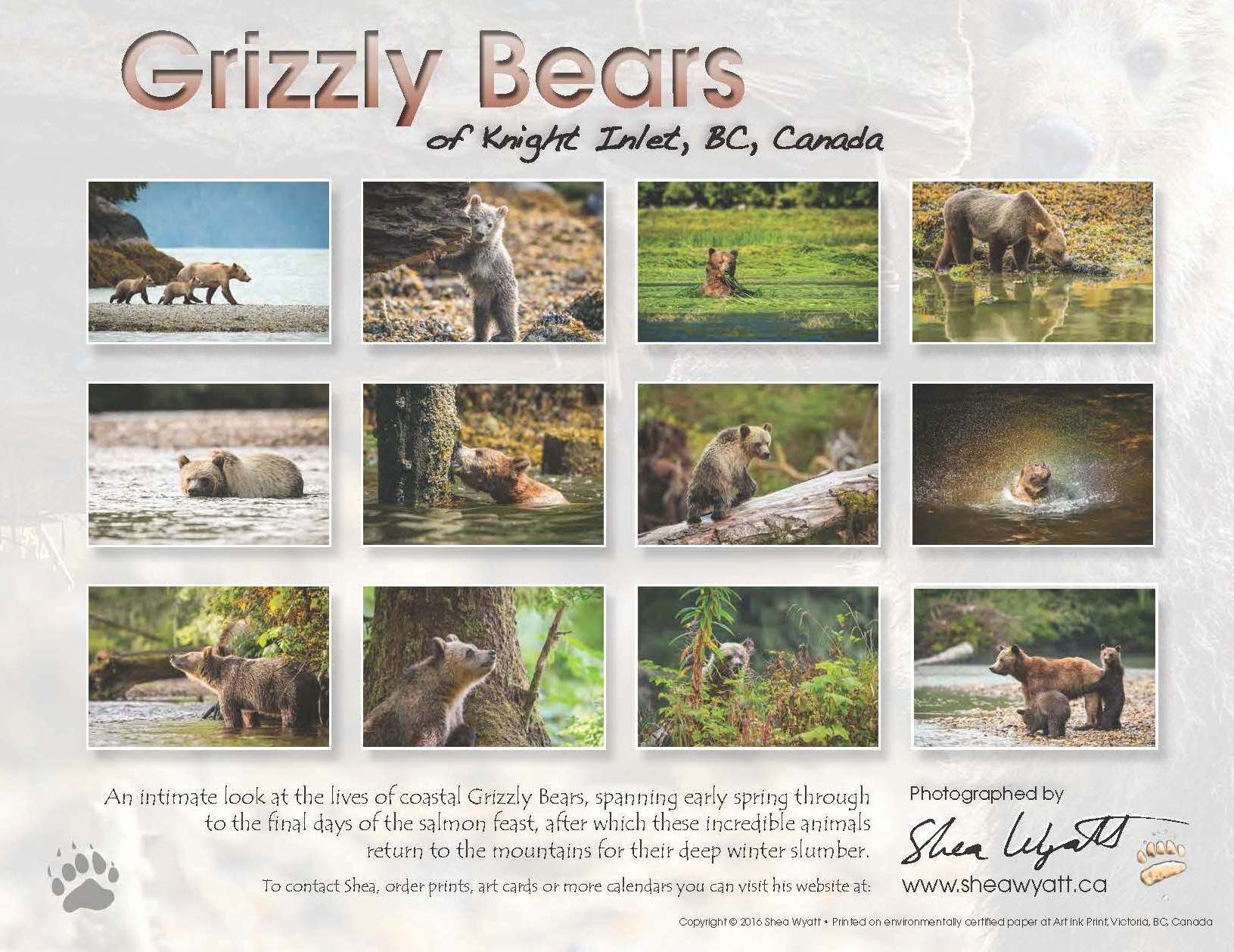 2017 Knight Inlet calendar featuring the photography of Shea Wyatt.