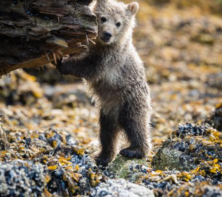 Curious cub photo by Shea Wyatt. Available as a post card (PST), art card (ART) or 8 x 10 print (8x10)