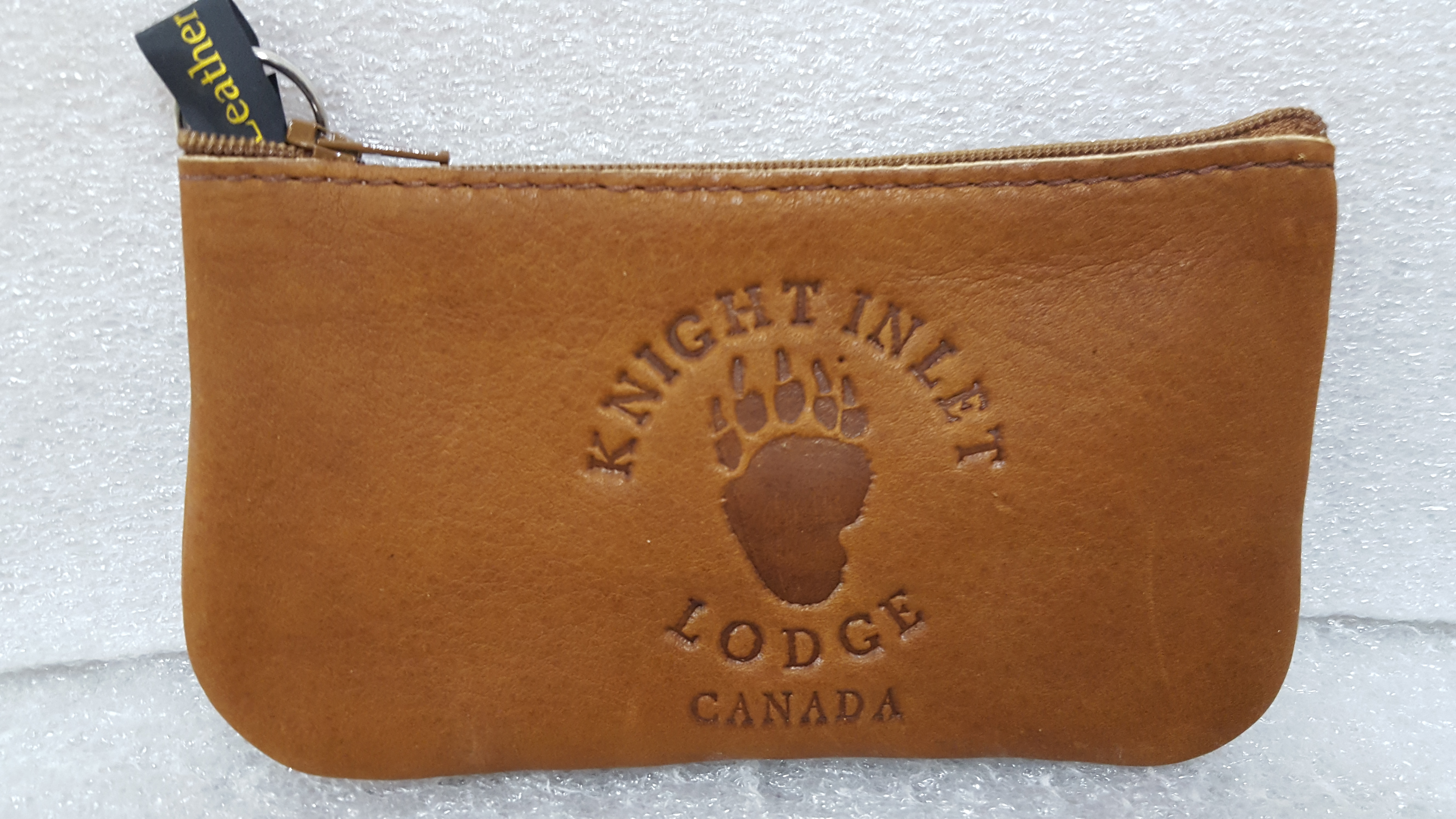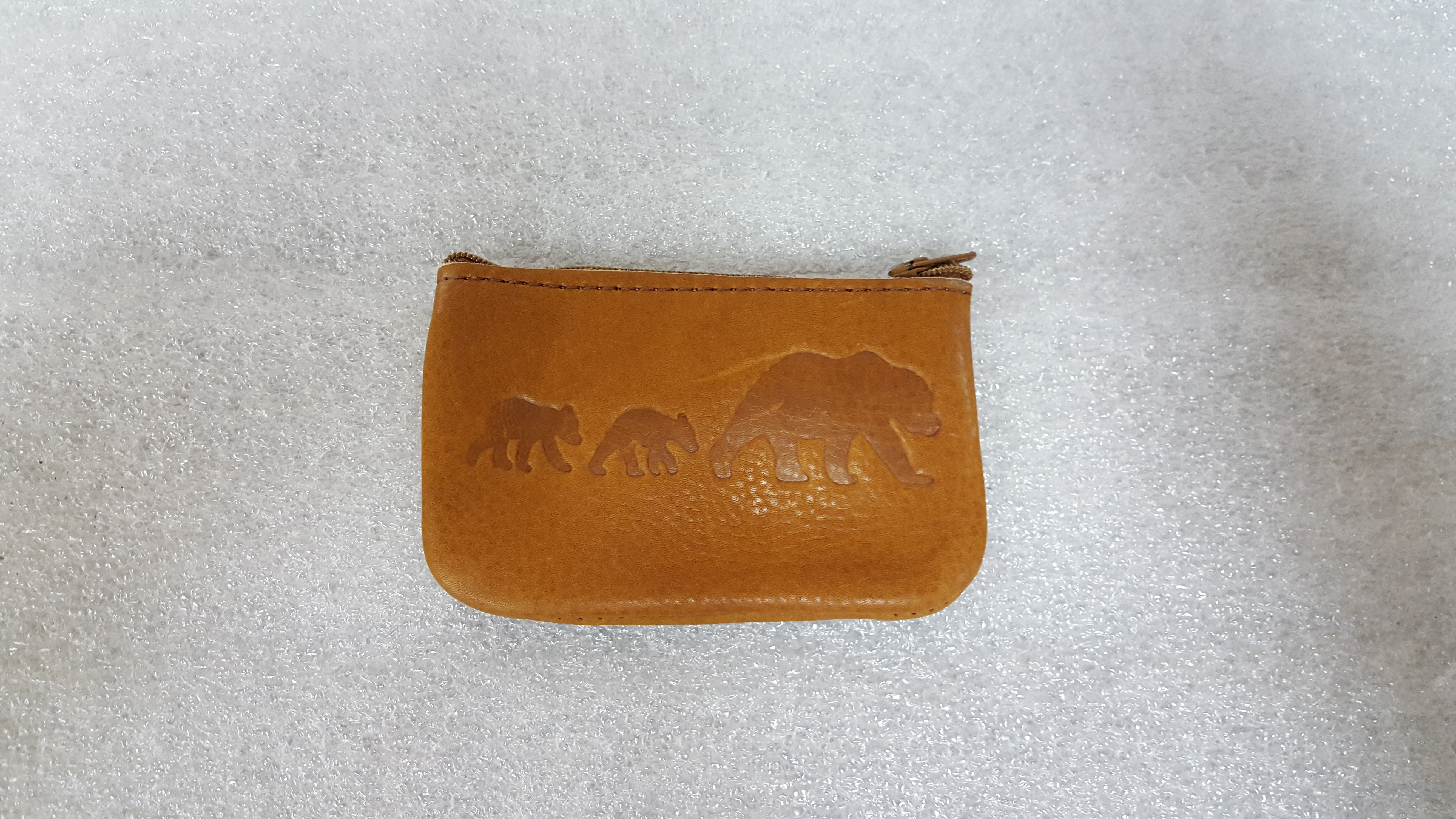Leather change purses. Large size approximately 5 1/2 inches long by 3 inches high. Small purse is 4 1/2 inches by 2 1/2 inches. Handcrafted by local (Vancouver) Craftsman.
